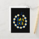 Mostre seu apoio à Ucrânia com este design de cartão-postal moderno, com uma coroa de flores brancas que tem o texto "Paz e Amor" em azul e amarelo, com cores de fundo preto na bandeira da Ucrânia.