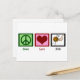Eu não vou a lugar nenhum sem minhas agulhas e fios para tricô. Um cartão-postal bonitinho que lê o Knit do Amor pela Paz sob um design bonito. Cartão de excelente para um clube ou grupo de tricô.