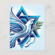 Esta peça impressionante apresenta uma pomba graciosa em voo de médio, suas asas se espalham e um vibrante galho verde de oliveira, delicadamente simbolizando a esperança. A pomba, renderizada em tons brancos suaves, contrasta lindamente com o pano de fundo de uma estrela azul e ousada de David, que captura o olho e o coração com sua profundidade e significado.