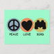 Três círculos representam paz, amor e ave (verbo). Um coração, um símbolo de paz e um par de binóculos constituem este design divertido para observadores de pássaros. Você pode personalizar totalmente este presente! Adicione texto, mude a cor, mova o design, escolha um estilo diferente - faça dele seu!