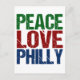 Um presente de Natal fantástico na Filadélfia que lê PEACE AMVE PHILLY em verde, vermelho e azul.