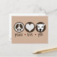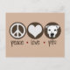 Cartaz personalizado "paz, amor, poços" com um sinal de paz, um coração e uma imagem do meu americano Pit Bull Terrier em ícones redondos ousados. Certifique-se de que todos sabem como você se sente sobre esta raça de cães amável e mal compreendida com este cartão postal moderno. Sinta-se livre para personalizar ou alterar a cor de fundo.