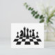 Cartão Postal Peças de xadrez pretas em um tabuleiro de xadrez