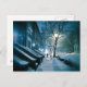 Uma pessoa que anda por uma rua coberta de neve no Upper West Side, em Nova Iorque, numa noite de inverno
