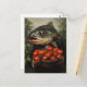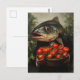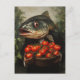 Um homem com um peixe para a cabeça segura um cheio de tomate fresco da arte da fantasia do jardim