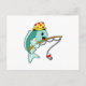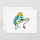 Cartão Postal Peixe na pesca com vara de pescar e chapéu