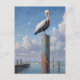 Cartão Postal Pelicano em um polo de doca de tempo