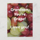 Uvas brilhantes com mensagem: "Vovô, você é a Uva! Eu te amo!" Esta brincadeira humorística com palavras é de certeza fazer qualquer neto sorrir!