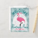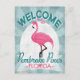 Pembroke Pines Flórida rosa flamingo. No estilo de posters viagens vintage, ele diz "Bem-vindo a Pembroke Pines, Flórida" em turquesa verde rosa, branca e menta.