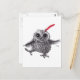 Feliz coruja dançando com pena vermelha. Arte de desenho do artista austríaco Stefan Kahlhammer. Para as pessoas de aves e corujas e animais que amam as artes, com senso de humor. A obra de arte original é um desenho de caneta e tinta.