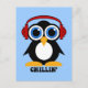 Pinguim de smoking bonito e legal, com fones de ouvido vermelhos ouvindo camisetas de música e presentes para amantes de pinguins. Roupa de pinguim único, original e engraçado e presentes para amantes de música e pessoas que gostam de relaxar.
