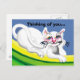Cartaz de gato alegre para avisar alguém que você está pensando neles
