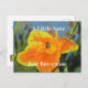Este cartão-postal apresenta uma grande flor de lírio canna que está sendo visitada por uma bela abelha. Esta foto de flor captura as pétalas laranja e amarelas brilhantes com um céu azul e a folhagem verde mudada ao redor da floração. "A Little Note Only Bee-Causa" é o trocadilho de abelha que elogia esta fotografia da natureza. As costas permitem muito espaço para a sua mensagem personalizada.