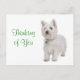 Quem consegue resistir à face de um pup de Terrier West Highland?Este cartão postal divertido apresenta um doce cão branco de Puppy Westie em pé sobre um fundo branco nítido. Esse filhote está pronto para ajudá-lo a enviar saudações de Pensar em você para seus amigos e família. Cartões postais doidos são um alternativo econômico para um cartão de saudação quando você quer enviar uma nota rápida para alguém especial. Pensando em você, Terrier da Highland Ocidental Branca - Westie - Cartão-postal de Saudação