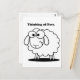 O amor está no ar, mas isso nem sempre significa declarações apaixonadas com cupidos e corações. Às vezes, tudo o que você realmente quer dizer é algo fofo e flerto como este carneiro. Afinal de contas, todos sentimos os nossos corações agitados com um profundo sentimento de saudade e ligação às memórias de um querido amigo. Até a mensagem mais simples de amor reforça o vínculo da amizade e mostra que você se importa com o bem-estar deles, fornecendo apoio emocional, especialmente durante tempos desafiadores, e ajudando-os a se sentirem valorizados e apreciados. Alcançar pode fortalecer as relações e é tão fácil de fazer! Este design personalizável apresenta um desenho preto e branco de uma ovelha fofa com um sorriso grande e as palavras "Pensando no Olho" escritas acima em uma fonte divertida.