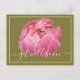 Cartão Postal Peônia Rosa Com Gotículas de Orvalho Fundo Verde M