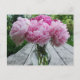 Cartão Postal Pêonias rosadas/Flores de Peônias em Vase