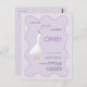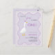 Celebre o seu grande dia com este encantador primeiro convite de aniversário, com um ganso pintado à mão num chapéu de festa e fita sobre um fundo púrpura macio de lilac pastel com uma moldura ondulada e verificações de gingham lilás correspondentes. A doce arte guache e o nome moderno da escrita tornam-na perfeita para rapazes e raparigas de um ano. Todo texto é totalmente personalizável. Arte original de Nic Squirrell.