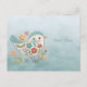 Cartão postal Pequeno Pássaro Azul Flores Rosa