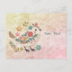 Lindo Cartão Postal Pequeno Pássaro Deixa Flores Rosa