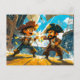 Cartão Postal Pequeno Pirata Batalhando Contra Outro Pirata em u