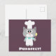 Gatinho de Chef bonito com a palavra "Perfeito!" sobre uma cor de fundo roxa de beringela.