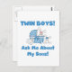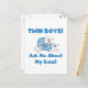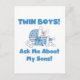 A orgulhosa nova mãe e pai dos gêmeos bebês amará esta design bonitinha com dois coelhos de menino e texto azul que diz "Twin Boys! Pergunte-Me Sobre Os Meus Filhos!" T-shirts, cartões, botões, magnetos, bolsas, mousepads e muito mais!