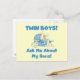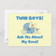 A orgulhosa nova mãe e pai dos gêmeos bebês amará esta design bonitinha com dois coelhos de menino e texto azul que diz "Twin Boys! Pergunte-Me Sobre Os Meus Filhos!" T-shirts, cartões, botões, magnetos, bolsas, mousepads e muito mais!
