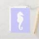 Forma branca de um cavalo marinho contra um azul-piscar-luz.