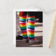 Pernas cobertas de legumes arco-íris em comemoração a um evento de orgulho LGBTQ. Este cartão postal é totalmente personalizável.