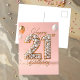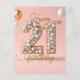 Entre no centro das atenções da celebração com este cartão de aniversário de 21 anos deslumbrante - uma verdadeira obra-prima criada especificamente para esses momentos inesquecíveis. O design dança com elegância: um "21" hipnotizante adornado com pérolas cintilantes e detalhes dourados, colocado contra um fundo rosa suave onde balões brancos e dourados flutuam como sonhos em voo. Cada detalhe é uma celebração da vida, convidando-o a adicionar seu toque pessoal, personalizando completamente o texto para ecoar seus próprios desejos sinceros.