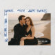 Procurando uma maneira elegante de anunciar seu casamento? Este cartão-postal personalizável de "salve o dia" permite que você faça o upload de sua foto de noivado favorita, mantendo o design sofisticado e moderno. Com uma tipografia elegante que combina com roupas escuras e ambientes de praia, o verso apresenta um padrão azul de chinoiserie atemporal para um acabamento clássico. Perfeito para casamentos na praia, casais modernos ou qualquer pessoa que queira um toque refinado e pessoal.