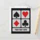 Um presente de excelente para um jogador de cartas! Altere os campos de texto para o que você deseja (por exemplo, seu nome ou seu jogo, como ‘Poker’, ‘Bridge’, ‘Canasta’ etc.). Você também pode alterar cada fonte e seu tamanho e cor, além de adicionar mais campos de texto e/ou alterar (editar) a cor de fundo deste item, usando a função "Personalizar". Veja na minha loja mais itens de jogos de cartas.