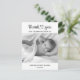 Um design elegante e personalizado de foto de recém-nascido para agradecer a todos que enviaram suas congratulações e celebraram os orgulhosos pais que apresentaram o menino ou a menina ao mundo. O elegante design de agradecimento de bebê é ótimo para agradecer àqueles que enviaram seus votos de felicidade e compareceram à celebração do chá de bebê e enviaram presentes. Substitua a imagem por uma foto horizontal do novo bebê. O texto pode ser personalizado. Você pode alterar a cor da fonte, o tamanho da fonte e o tipo de fonte. Você também pode alterar a cor do gráfico do coração de agradecimento usando a Ferramenta de Design. O design especial de anúncio de nascimento é seu para personalizar como desejar. O design minimalista pode ser transferido para outros produtos.