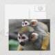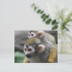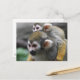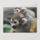 Um macaco de esquilo de bebê bonito agarrando-se às costas da mãe.