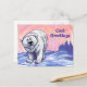Cartão postal personalizável com arte de urso polar fofo apresenta nosso personagem original de urso polar da nossa linha Animal Parade em pé em uma paisagem azul nevada com um céu rosa texturizado pintado por nossa talentosa ilustradora de livros infantis, Traci Van Wagoner. Adquira um novo amigo polar hoje e envie seu correio com este lindo design de Urso Polar. Fique selvagem e compre um conjunto completo de artigos de papelaria divertidos do Urso Polar!