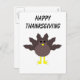 Este cartão-postal engraçado de Ação de Graças apresenta um desenho engraçado de um peru com grandes olhos pretos, um pequeno bico amarelo e penas de cauda enfiados. Os pés estão voltados em direções opostas, fazer o peru parece desajeitado. Este design divertido é ideal para o Dia de Ação de Graças.Há texto personalizável no cartão postal que permite personalizá-lo.