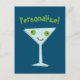 Personalize-o com seu nome ou mensagem. Uma bela ilustração de um martini feliz com olhos de azeitona. Um divertido design para uma festa de coquetel, bebidas depois do trabalho, noite de folga de um amigo ou qualquer celebração.