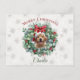 Cartão Postal Personalized Pet Christmas with Wreath & Name