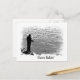 Vamos se afasta de tudo e vai pescar! Personalize ou remova facilmente o texto deste cartão postal, que apresenta uma imagem a preto e branco de um pescador solitário que se encontra numa borda rochosa no lago Seneca, em Genebra, Nova Iorque. O texto diz: "Foi pescar"