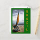 Esta bela fotografia é de uma jangada. O barco de pesca tradicional do Brasil. Com as cores do Brasil na vela e no cartão.