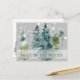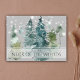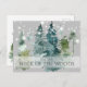 Este design apresenta árvores de aquarela, luzes de cordas e tipografia personalizada.