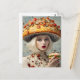 Uma mulher engraçada com um chapéu sanduíche de cogumelo e um sanduíche em suas mãos AI gerou arte
