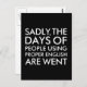 Infelizmente, os dias das Pessoas usando o inglês correto foram embora. Engraçado Gramática Humor Dizendo / Citação / Slogan. Humor Ortográfico.
