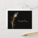 Digam obrigados com este obrigado de moda que vocês fazem postais com uma elegante pena de pavão de ouro com um olho azul de pavão contra um fundo preto. Imagem impressa plana, não folha dourada. Direitos autorais originais de ©PTKDesign