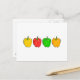 Exemplo colorido de um conjunto de quatro pimentões coloridos diferentes que se encontram em pé de forma clara numa linha. Imagem disponível em vários presentes e produtos.