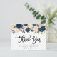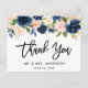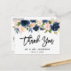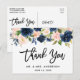 Cartão Postal Pincel Agradecimento de Casamento Floral Rosa Azul