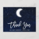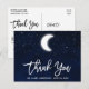 Cartão de agradecimento de casamento celestial com pincel moderno. Céu noturno azul com estrelas e lua em aquarela.