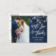 Pincel Moderno Script, Madeira Rústica Azul e Luzes de Corda com Jarras de Mason, Com Amor e Agradecimento Cartão de Casamento de Agradecimento