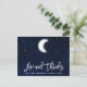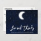 Moderno Pincel Script, Casamento Celestial Amor e Agradecimento, cartão postal de agradecimento. Céu noturno azul com estrelas e lua em aquarela.